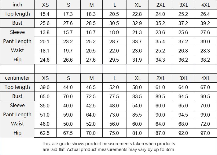 | Pant Length | 51.0 | 59.0 | 64.0 | 73.0 | 85.5 | 90.0 | 94.5 | 99.0 |